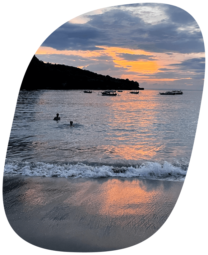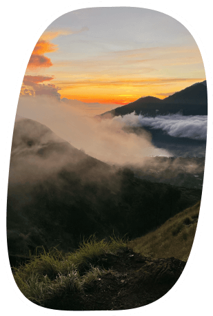 Here, one of the brightest experiences of my life happened: hiking to the Batur volcano at sunrise. We hiked from the non-touristic side of the mountain, which took us 3 hours to reach the top just as the sunrise began. It was a heavenly beautiful view. Despite being exhausted, I was incredibly happy in that moment. After the sunrise, our guides cooked us breakfast using the heat of the volcano between the hot rocks! They prepared boiled eggs, bananas, corn, and sweet potatoes.
