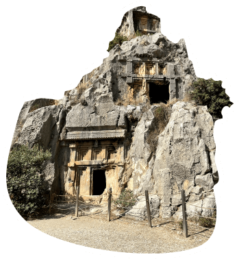 Visiting Myra, an ancient Greek town in Turkey. There are carved rock tombs that once housed the remains of Myra's most prominent citizens.
