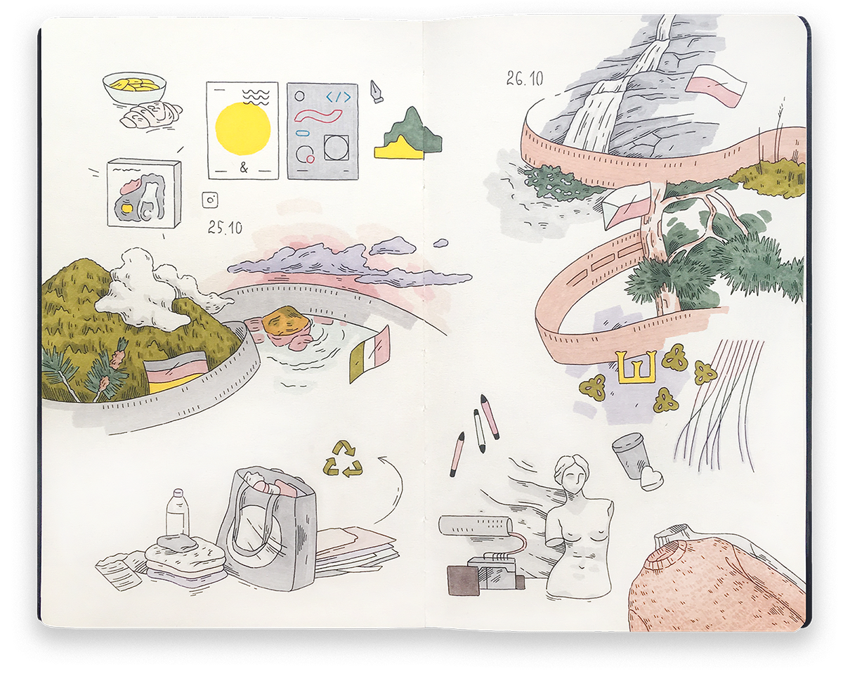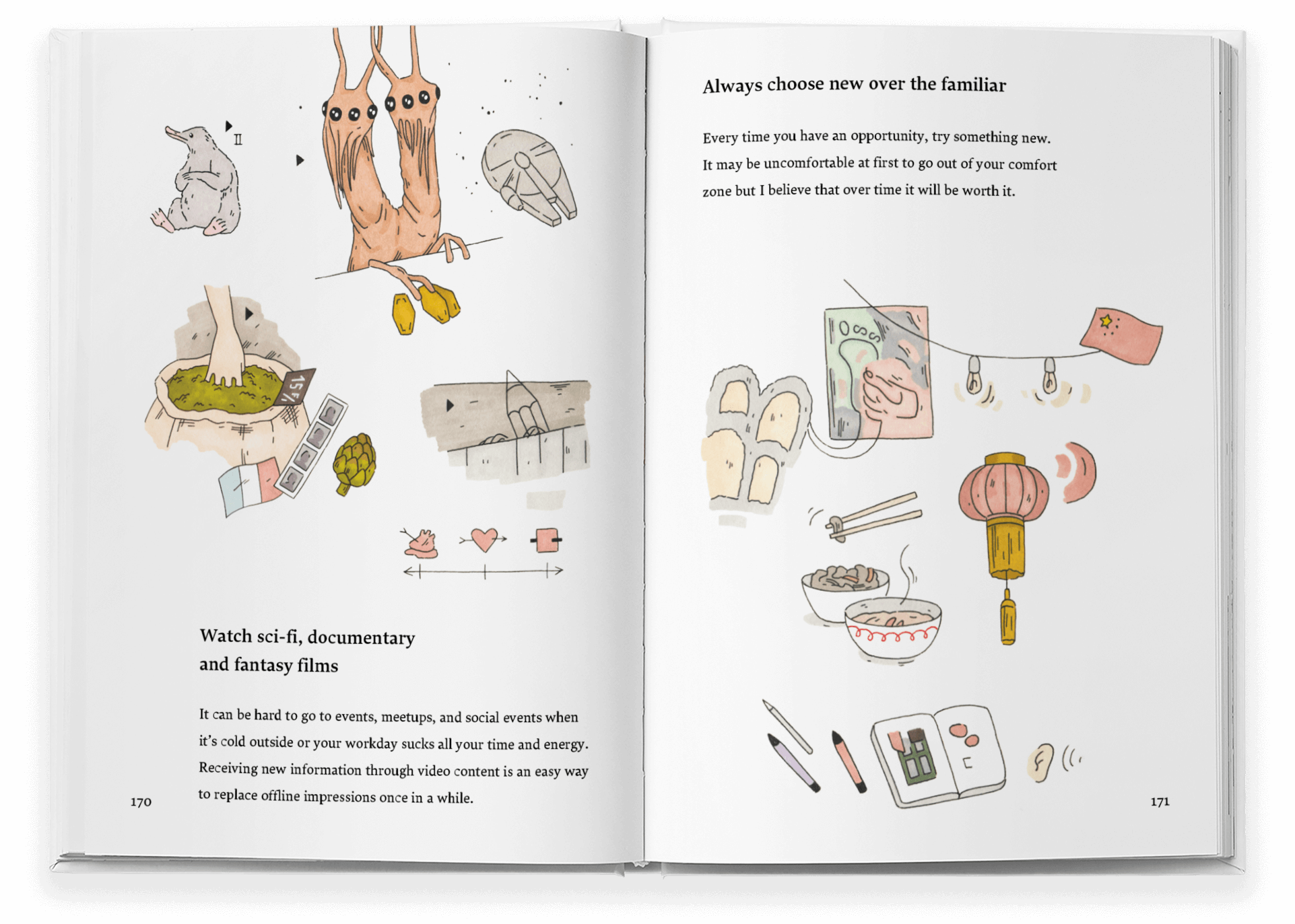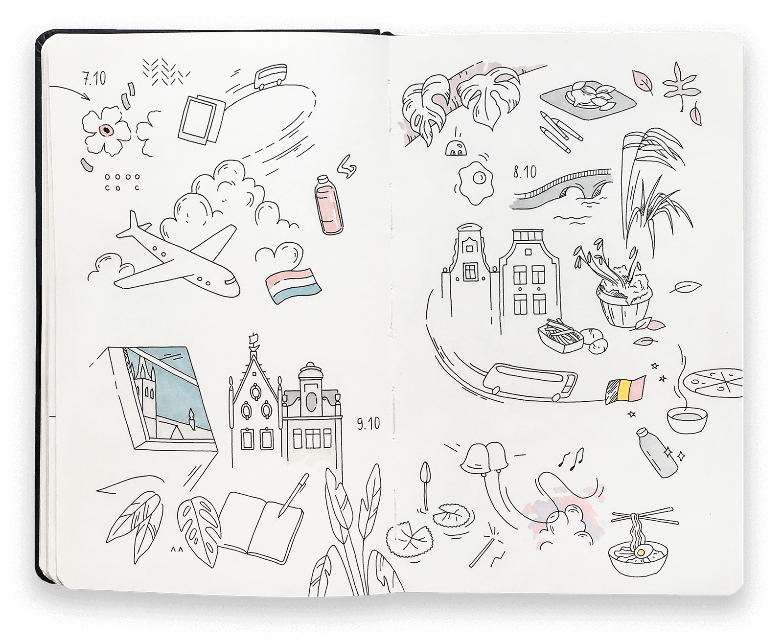 I illustrate my life in a Drawing Journal — a personal diary where instead of writing I capture my memories through drawing and other visual mediums. In this book, I will tell you about my experience and show how you can start your own! I believe you'll find it a great way to be inspired by your daily routine, develop your drawing skills, and remember special moments forever.